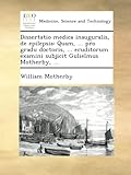 Conduct you quest to select Dissertatio medica inauguralis, de epilepsia: Quam, ... pro gradu doctoris, ... eruditorum examini subjicit Gulielmus Motherby, ... book?